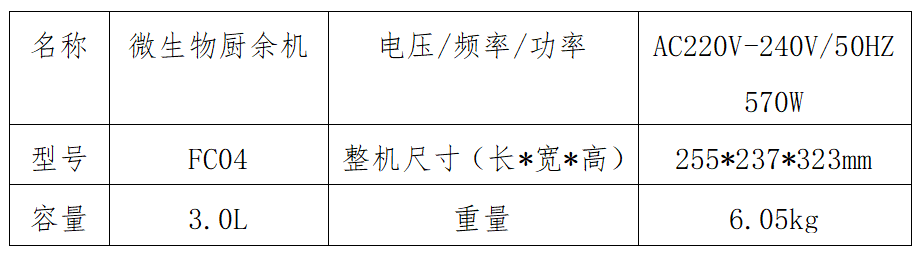 11.以上所有模式的工作时间会自动随着放入的厨余的量的不同而自动调整工作时长。所以会出现同一个模式下,机器完成厨余处理时间上有差异。